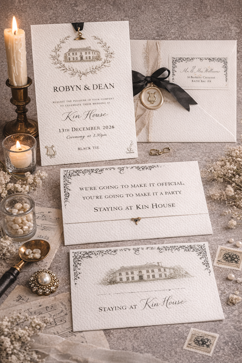 AI-generated image of an invitation suite in response to a client brief